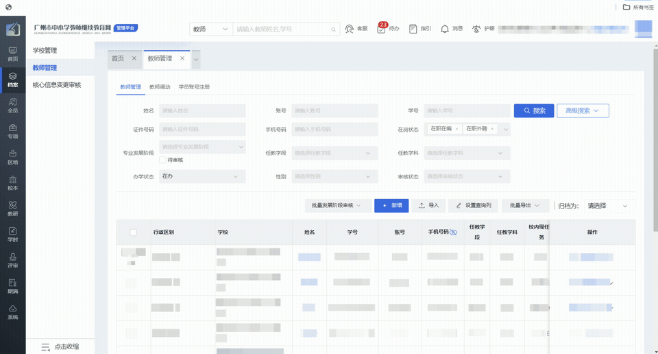 进入开学阶段,老师们个人基础信息的更新与调整也迎来了一个小高峰。对于校管理员而言,系统中待审核的教师信息更新申请逐渐增多——从学历提升、职称变动,到联系方式更新,每一条信息都关乎教师继续教育学时的认定,也与人事管理的有效性紧密相连。为了保障全校教师信息库的及时性与准确性,本期推文将为大家带来一份清晰的审核操作指引,从查询路径、核验要点到一键确认,全程陪伴各位校管理员高效、精准地完成信息审核工作。