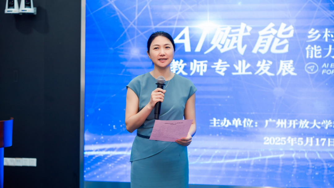 为推动乡村教师紧跟时代步伐,掌握前沿教育技术,由广州开放大学教师教育学院(广州市远程培训教师发展中心,履行广州市“市级教师发展中心职能”)主办的“AI赋能教师专业发展——乡村教师能力提升系列讲座”,于2025年5月17日在广州开放大学 7 号楼 1 楼报告厅正式拉开帷幕。广州开放大学副校长孙彬、乡村振兴学院院长李霖,教师教育学院院长王寒冰、副院长郭晓溶,以及华南师范大学教授张倩苇等专家领导出席活动,与乡村教师们共同开启这场教育与科技深度融合的创新之旅。